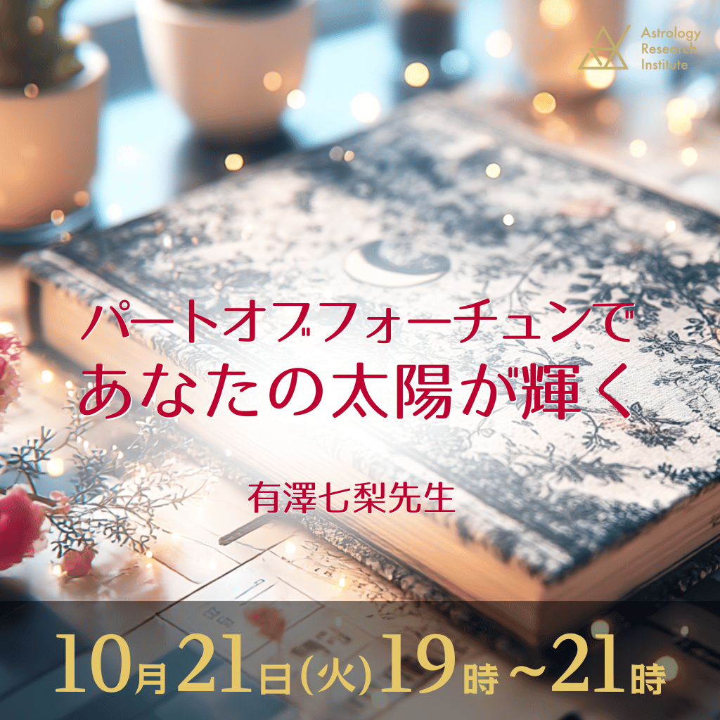 このセミナーでは、パートオブフォーチュンの計算方法や考え方などの解説のあと、参加者の方(希望者のみ)の実際のパートオブフォーチュンについて、その意味や活かし方などを先生に読んでいただきます。