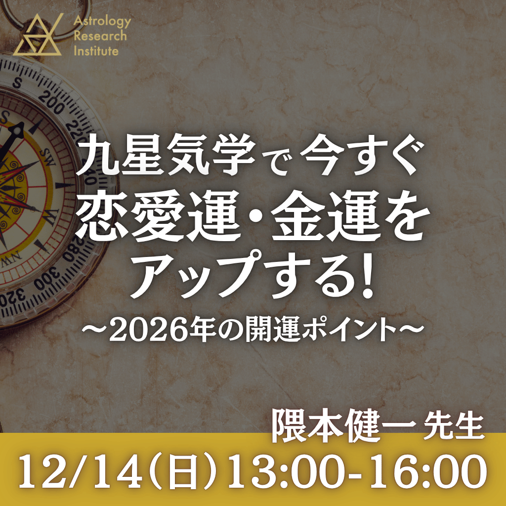 このセミナーでは九星気学の考え方を学ぶとともに、実際に恋愛運や金運をアップする方法までお教えします! 2026年の開運ポイントもバッチリお伝えいたします。