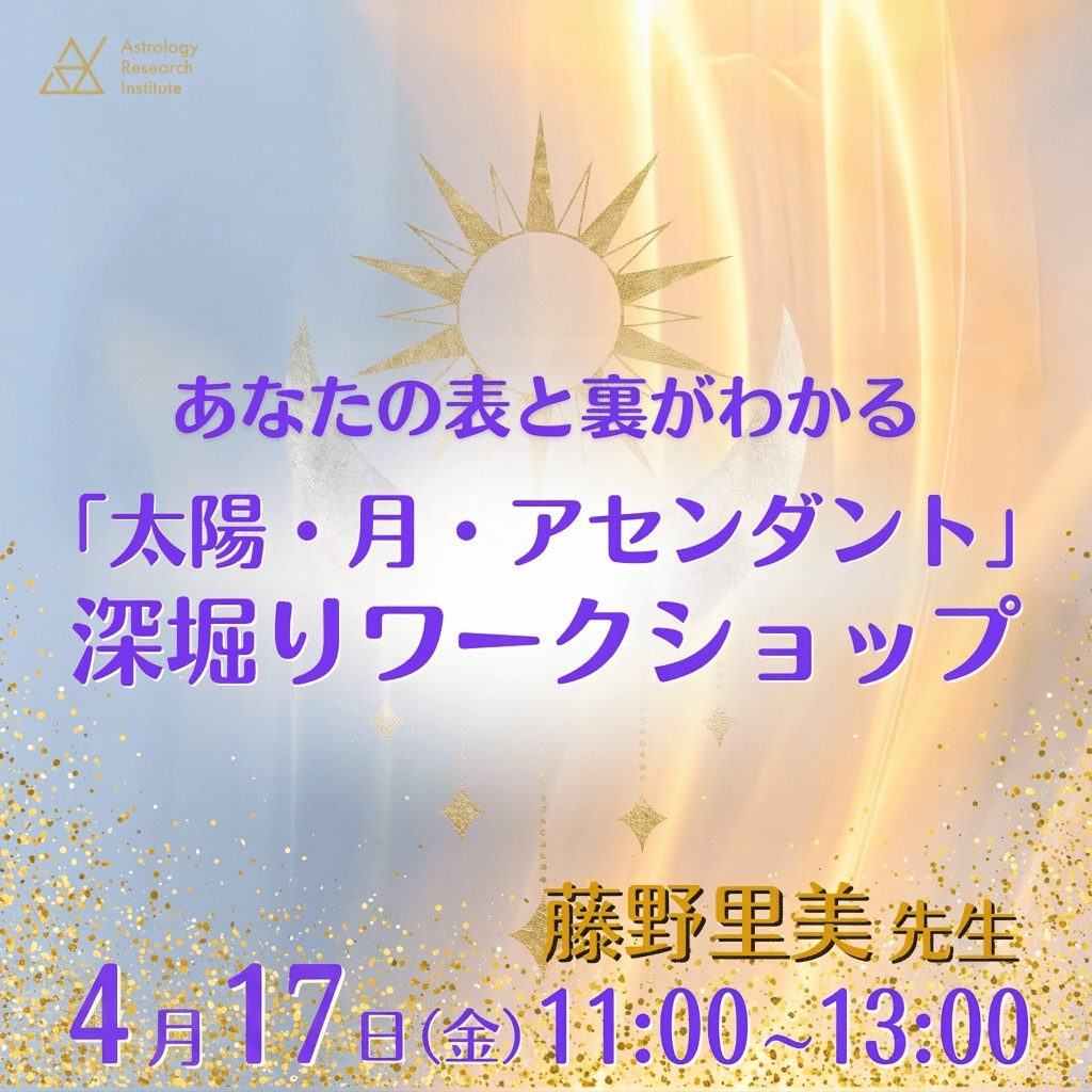 このワークショップでは、読み解き方のはじめの一歩、太陽・月・アセンダントという3つの天体・感受点を表と裏から「深堀り」して、あなた自身をより良く理解していきます。