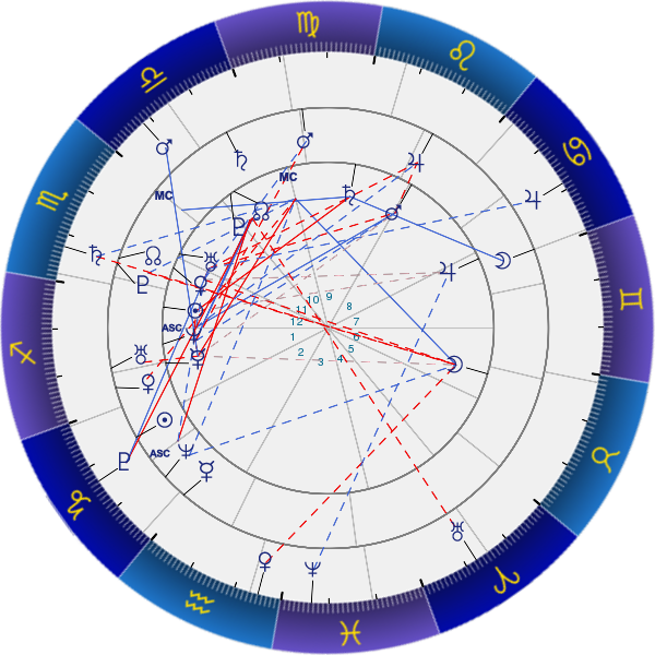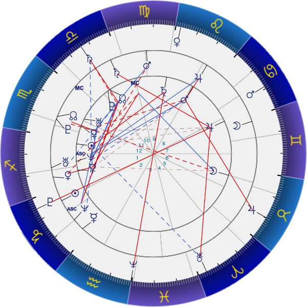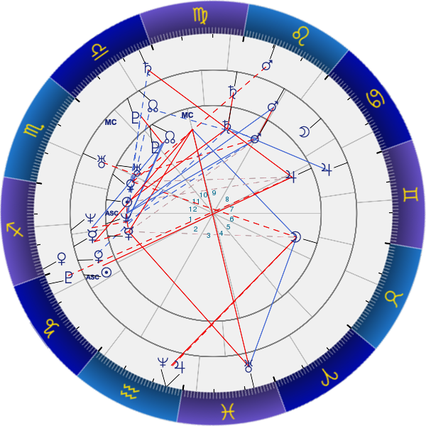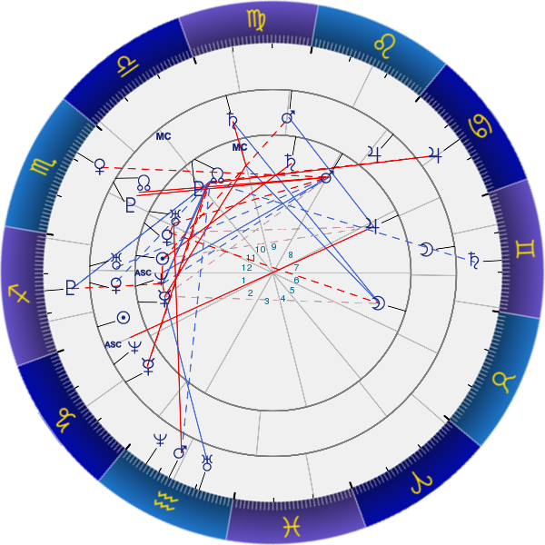 また、もともと土星とスクエアの太陽にソーラーアークの火星がスクエアになった時期でもあります。